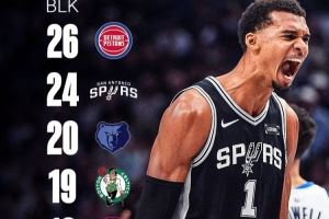 而截止目前,只有活塞、灰熊、凯尔特人、快船四支球队的盖帽总数比文班亚马要多。