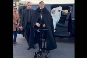 脚踝受伤,阿什拉夫骑特制滑板车出席非洲足球联合会颁奖典礼